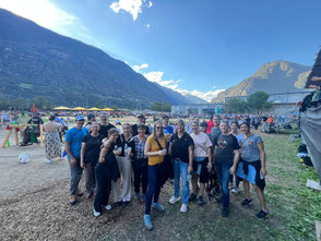 Während die einen mit Vereinsfahne und blumengeschmückten Hörnern noch die hiesige Fronleichnamsprozession begleiten konnten, befanden sich die eifrigen Kampfrichter Thomas Camenzind und Sascha Niederer bereits auf dem Weg nach Lausanne. Unter den Augen der fachkundigen Turnveteranen Leif und Kurt hatten sie am Nachmittag diverse Wurfdisziplinen zu betreuen. Sie taten dies souverän; weder ein Speer noch ein Schleuderball oder ein Wurfkörper konnte ihnen etwas anhaben. Die entstandenen Hautrötungen waren definitiv auf die Sonne zurückzuführen. Am Abend trafen sich dann (fast) alle in der gemieteten Landresidenz in Villars-Mendraz zum Spaghettiplausch und der anschliessenden Teamsitzung.
